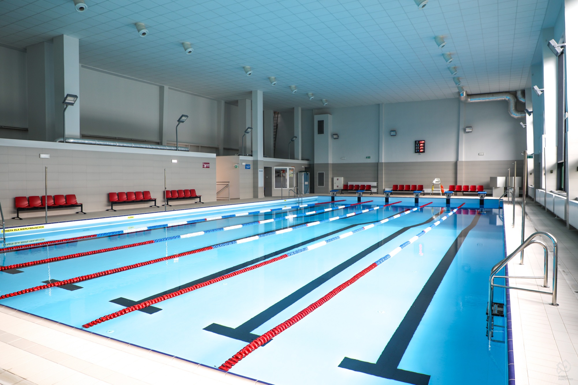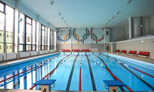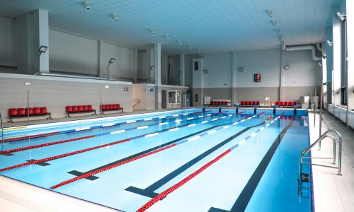Dzięki funduszom europejskim wykonano pełną termomodernizację, instalację fotowoltaiczną oraz wentylację z odzyskiem ciepła (4,6 mln zł), co znacząco obniżyło koszty eksploatacji i emisję. Wnętrze basenu zyskało nową nieckę i plażę basenową (2,7 mln zł), przywracając obiektowi wysoki standard techniczny i estetyczny. Uzupełnieniem była modernizacja technologii wody basenowej (1,7 mln zł) z zastosowaniem innowacyjnej filtracji membranowej. Nowy system skutecznie usuwa wirusy i bakterie, ogranicza użycie chloru oraz zmniejsza zużycie wody i energii, zajmując mniej miejsca niż tradycyjne instalacje.