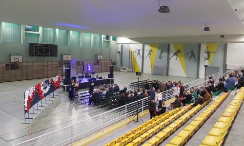 Nowy Tomyśl / wielkopolskie Termomodernizacja hali sportowej przy Gimnazjum im. F. Szołdrskiego w Nowym Tomyślu Inwestor Urząd Miejski w Nowym Tomyślu Wykonawca Przedsiębiorstwo Budowlane Constructo Lubicz Projektant AKPB Architekci Poznań inwestycja dofinansowana przez WFOŚiGW w Poznaniu, wartość projektu 6 245 751,09 52.3206549, 16.118026