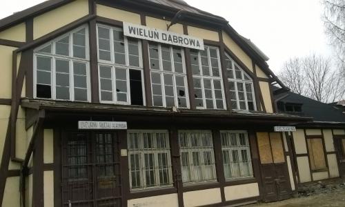 Budynek usytuowany na działce o nr geodezyjnym nr 222/15, obręb 4 przy ul. Kolejowej 8 w Wieluniu w dawniejszych czasach posiadał miano dworca PKP, czyli miejsca stanowiącego poczekalnie i obsługę osób korzystających z linii kolejowych. Przyległa stacja kolejowa w mieście Wieluń, na linii kolejowej nr 181 z Herb Nowych do Oleśnicy graniczy z wsią Dąbrowa. Wznoszenie dworca rozpoczęto podczas budowy odcinka Herby Nowe - Wieluń Dąbrowa - Podzamcze w 1926, natomiast oddany do użytku został 18.09.1927. Posiada rozbudowaną, lecz bardzo zniszczoną infrastrukturę. Gmina Wieluń w latach 2017-2018 wykonała adaptację dworca kolejowego Wieluń – Dąbrowa na cele kulturalne. Budynek został przebudowany i zaadaptowany. Wykonane zostało również zagospodarowanie terenu w zakresie utwardzenia terenu, dojść do budynku oraz zieleni. Zostały także wykonane i zmodernizowane media wchodzące do budynku. Wybudowano także przyłącze gazowe do budynku i zamontowano piec służący do ogrzewania. W ramach zadania zakupiono wyposażenie, które będzie służyło do realizacji celów kulturalnych.