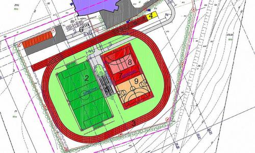- boiska wielofunkcyjnego, o wymiarach 40 x 20m, o nawierzchni poliuretanowej o powierzchni całkowitej 800,00 m2;