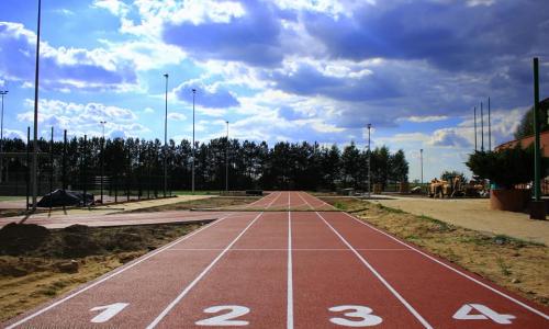 - bieżni i skoczni do skoku w dal z zeskokiem (piaskownica) o wymiarach 4 x 8m; Bieżna czterotorowa o długości 250,00 m po obwodzie w tym odcinek prosty 70,00 m, o nawierzchni poliuretanowej;