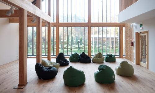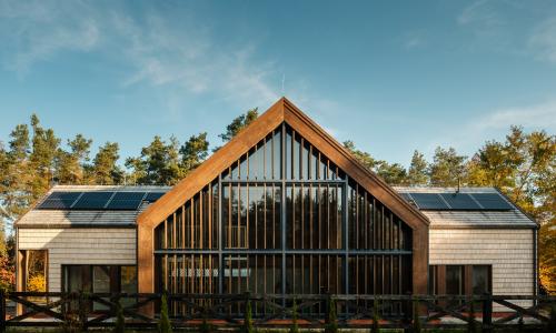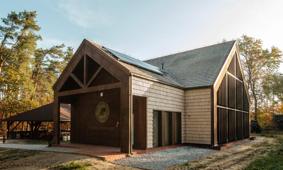 Centrum Promocji Drewna - obiekt wielofunkcyjny w leśnictwie Jata. Inwestycja zrealizowana jako budynek energooszczędny. Jego podstawowym przeznaczeniem jest promocja drewna jako najlepszego materiału o wszechstronnym zastosowaniu, odnawialnego, przyjaznego środowisku, magazynującego CO2. W budynku wykorzystano system konstrukcyjno – izolacyjny, złożony z elementów drewnianych, w którym właściwości nośne mają drewniane belki dwuteowe oraz elementy (słupy i belki) z drewna klejonego, natomiast właściwości termoizolacyjne zapewniają materiały drewnopochodne na bazie włókna drzewnego w postaci płyt, mat i granulatu. Ponadto na dachu jak i elewacji budynku zaprojektowano fasadę wentylowaną pokrytą gontem osikowym. Dzięki bardzo dobrej charakterystyce energetycznej obiektu, a co za tym idzie znikomym zapotrzebowaniu na energię, możliwe będzie zaspokojenie znacznej części potrzeb energetycznych za pomocą OZE. Budynek wyposażony jest w instalację fotowoltaiczną o mocy 4,06 kWp, która wspomaga systemy c.o. i c.w.u. oparte o gruntową pompę ciepła typu solanka/woda. Budynek przeznaczony jest do propagowania technologii budowlanych opartych na drewnie oraz na jego wszechstronnym użyciu na potrzeby życia codziennego. Budynek będący przedmiotem inwestycji jest obiektem administracji leśnej. Jego uzupełniającym przeznaczeniem, jest funkcja promocji Rezerwatu Jata, na ten cel przeznaczone będzie 10% ekspozycji obiektu. Wszystkie funkcje projektowanego budynku są integralnie związane z funkcja lasu.