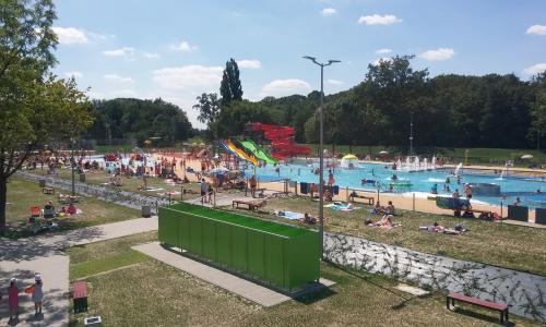 Basen sportowo – rekreacyjny to ponad 1300 metrów kwadratowych atrakcji. Ławki z masażem, masażery karku, siatka do wspinaczki, gejzery, rwąca rzeka oraz grota sztucznej fali. W części rekreacyjnej głębokość niecki wynosi od 1 m do 1.35 m. Trzy zjeżdżalnie (rurowa, rodzinna i dwu-torowa) to wspaniała atrakcja dla małych i dużych. Dla pływaków zawodowych oraz amatorów czekają w części sportowej 4 tory pływackie o maks. głębokości 1.8 m. Brodzik o głębokości od 0.3 m do 0.45 m posiada dwie zjeżdżalnie „Słonik”, drzewka wodne oraz jeżyki. Wodny plac zabaw to ciekawy element aranżacji basenu letniego. Wiaderka z wodą, tunel, armatki wodne i inne atrakcje do wspólnej zabawy
