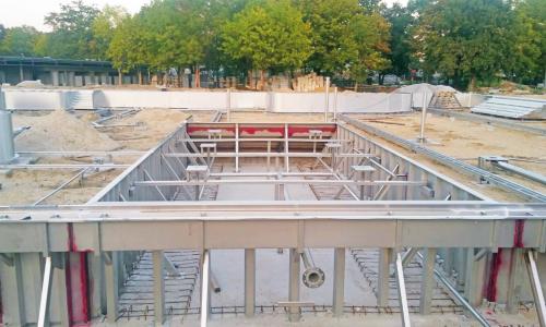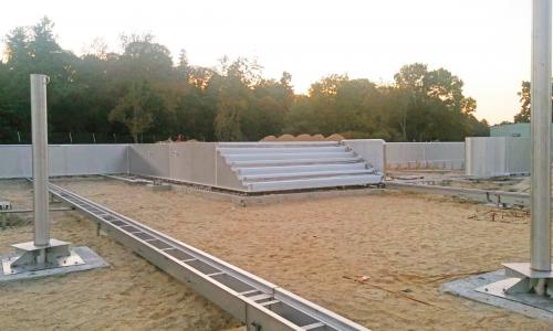 - rozbiórka częściowa elementów istniejącej niecki powyżej płyty dennej i budowa nowych niecek basenowych ze stali nierdzewnej, zjeżdżalni, wodnego i suchego placu zabaw oraz plaż twardych,