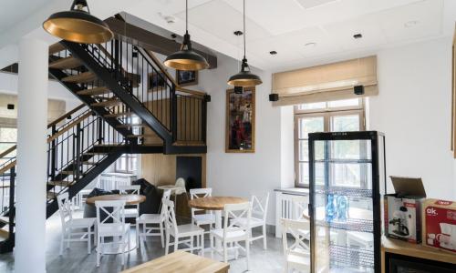 Parter i antresola Domku Ogrodnika będą służyły spotkaniom w kawiarni i wydarzeniom kulturalnym. Przyjazne, jasne wnętrza są ozdobione historycznymi grafikami i wyposażone w wygodne meble kawiarniane oraz niewielkie zaplecze. Przestrzeń na wydarzenia kulturalne, szczególnie w ciepłych miesiącach roku, znajdzie się również na otaczających Domek tarasach. Ich amfiteatralne ułożenie sprzyja organizacji koncertów, widowisk czy kina letniego, które będzie można oglądać także z innych części Parku Czartoryskiej, np. z drugiego brzegu parkowego stawu.