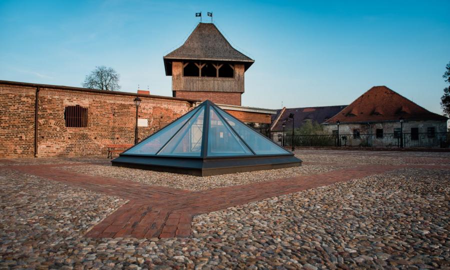 Utworzenie muzeum możliwe było dzięki unijnemu dofinansowaniu, które przyczyniło się do poprawy stanu zachowania i odtworzenia historycznego wyglądu piwnicznej części zabytkowego Kompleksu Zamkowego w Koźlu. Całkowitej renowacji zostały poddane piwnice pamiętające jeszcze czasy średniowiecza. Wewnątrz muzeum zainstalowano oświetlenie, które w efektowny sposób eksponuje wystawę. Centralnym punktem obiektu są pozostałości po ceglanym stołpie (donżonie). To najcenniejszy element architektoniczny znajdujący się na wzgórzu zamkowym. Na dziedzińcu obiektu, poza wybudowanym tam pawilonem, usytuowano przeszkloną piramidę, pod którą znajduje się relikt wieży. Takie rozwiązanie pozwala w naturalny sposób doświetlić zabytek i umożliwia podziwianie go z innej perspektywy. Cały plac został wybrukowany, a ustawione na nim stylowe ławeczki zachęcają do chwili odpoczynku po niezwykłym spacerze z historią w tle.