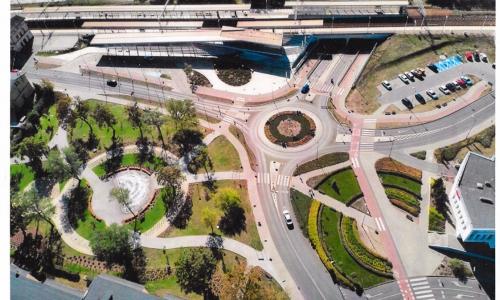 W ramach projektu stworzono strefę zieleni miejskiej wraz ze ścieżką edukacyjną oraz wydzielonymi trasami komunikacyjnymi o nawierzchni gruntowej oraz z kostki betonowej. Układ kompozycyjny zieleni nawiązuje do kolistego kształtu placu z fontanną i układu okalających ścieżek. Zamontowano elementy małej architektury m.in. ławeczki, kosze, stojaki na rowery.