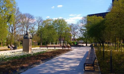 Park im. S. Moniuszki został kompleksowo zmodernizowany a jego obecna powierzchnia została powiększona o wolny teren powstały po wyburzeniu sąsiedniej kamienicy.