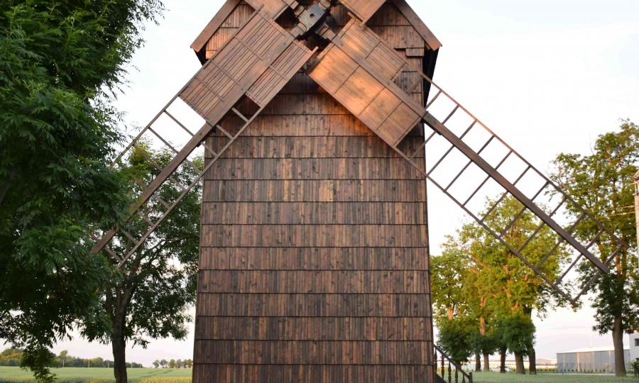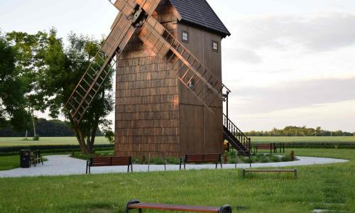 W ramach inwestycji wykonano następujące prace: renowację zabytkowego wiatraka: wymianę skorodowanej mącznicy i fragmentu sztembra, impregnację wewnątrz, wymianę zewnętrznego szalunku ścian i pokrycia dachu wiatraka wraz z malowaniem impregnacyjnym zewnętrznym, odtworzenie skrzydeł i schodów z zadaszeniem, wymianę skorodowanych elementów drewnianych budynku (słupy, rygle, nadbitki, zastrzały) oraz zagospodarowanie terenu wokół wiatraka na potrzeby urządzenia stanicy rowerowej. Roboty zakończono 16.08.2019 r.