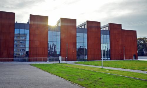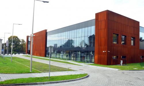 Nowoczesna jest elewacja obiektu, na której zastosowano m.in. panele ze stali kortenowskiej.