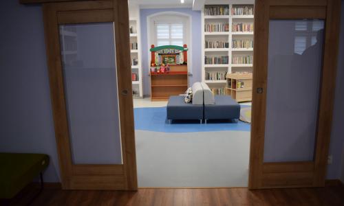Wnętrze podzielono na trzy strefy: relaksu i ciszy, rodzinną z atrakcjami dla dzieci oraz wypożyczalnię z możliwością przekształcenia jej w salę kinową, konferencyjną czy pracownię artystyczną (wypożyczalnia w systemie elektronicznym MAK+) - w zależności od potrzeb. Do całej biblioteki zakupione zostało nowe wyposażenie.