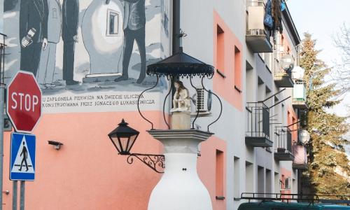 Stojąca na rogu ulic Kościuszki i Węgierskiej w Gorlicach kapliczka datowana jest na ok. 1850 r. Na cokole o beczkowatym kształcie znajduje się Chrystus Frasobliwy pod baldachimem. Figura długo skrywała tajemnicę – dopiero prace konserwatorskie u progu lat 90. ubiegłego stulecia ujawniły datę jej powstania – 1593 r. Legenda głosi, że figurę tę podczas powodzi do miasta przyniosła rzeka. Obecnie na cokole znajduje się jej kopia, a oryginał obejrzeć można w Muzeum Regionalnym PTTK w Gorlicach. Kapliczka nie tylko ze względu na swój wiek i legendę jest dla gorliczan wyjątkowa. To tutaj, w 1854 roku zapłonęła pierwsza na świecie uliczna lampa naftowa, skonstruowana przez Ignacego Łukasiewicza, rozświetlając ruchliwy, węgierski trakt. Gorlice – Miasto Światła, wyjątkowo dba o swoje naftowe dziedzictwo, a Kapliczka, będąca symbolicznym miejscem, od lat wymagała przeprowadzenia prac konserwatorskich, które udało się zrealizować w minionym roku.