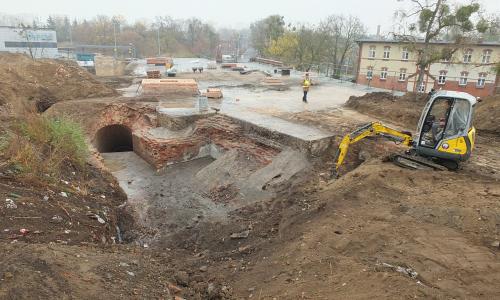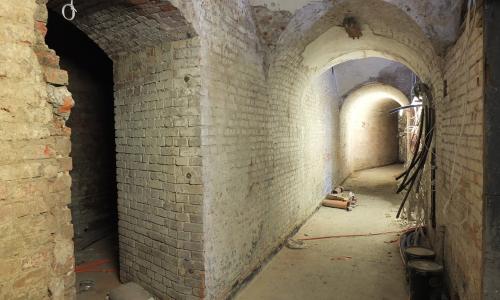 4. Odtworzono ciągi komunikacyjne schronów pogotowia, z zachowaniem oryginalnych schodów składających się z 25 granitowych stopni, odkrytych podczas prac budowlanych.