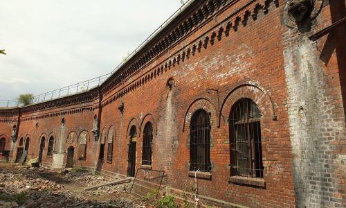 2. Wykonano kompleksową naprawę elewacji włącznie z odtworzeniem zniszczonych lub usuniętych elementów murowanych i armatury odwodnienia sklepień. Zachowano dolną część oryginalnej balustrady nad koszarami.