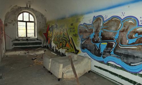 5. Dawne komory mieszkalno-magazynowe zespołu koszarowego przystosowano do pełnienia funkcji sal ekspozycyjnych. Zachowano wszelkie drobne elementy pierwotnego wyposażenia, takie jak: zawiesia zasłon pancernych, bloczki linowe, haki do mocowania ekwipunku, kanały odwadniające itp. Konserwacji poddano wiatrołap w sieni oraz 12 szt. nadświetli ścian działowych, które oczyszczono z wtórnych malatur i ponownie oszklono.