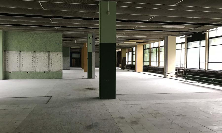 Przebudowa obiektu obejmowała wszystkie kondygnacje budynku. Wymogi nowego użytkownika wymusiły uzyskanie dużej, wolnej od słupów przestrzeni na pierwszym piętrze. W tym celu zwiększono rozpiętość konstrukcji z 6,3 do 12,6m z zastosowaniem cięgien sprężonych w istniejącym stropodachu. Dzięki wprowadzonym nowatorskim rozwiązaniom uzyskano wolną przestrzeń o wymiarach 30x12,6m.