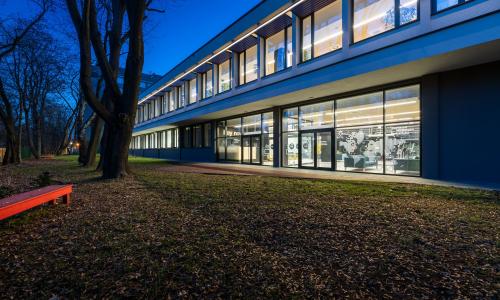Miejsca pracy, sale dydaktyczne zostały dostosowane dla osób poruszających się na wózkach inwalidzkich. Kolory mebli zaprojektowano w kolorach kontrastowych do podłogi. W holu i korytarzach wykonano ścieżki prowadzące, elementy fakturowe. Każde pomieszczenie zostało opisane w alfabecie Brail’a a identyfikację wizualną budynku wykonano w sposób kontrastowy do tła o dużych symbolach. Sale wyposażono w pętle indukcyjne.