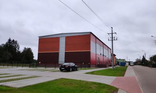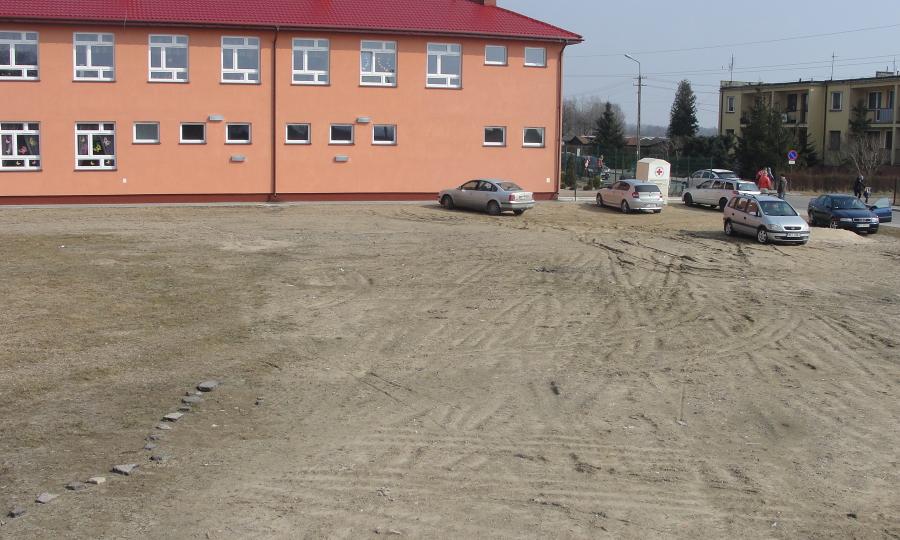 Dla obiektu wykonano również dojazdy, chodniki oraz miejsca postojowe dla samochodów i rowerów.