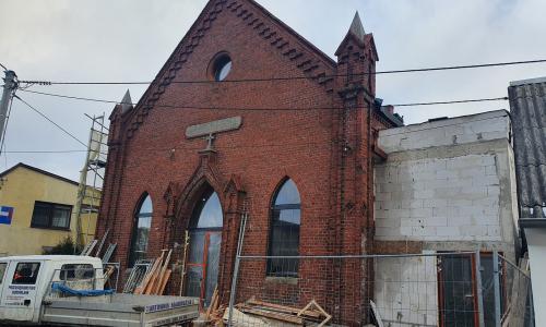 W Więcborku przy ulicy Rybackiej 11 A w Więcborku znajdował się obiekt zdegradowany i służący jako magazyn, po byłym kościele ewangelickim. Budynek stanowi własność Gminy Więcbork. Wybudowany został w 1910 roku, a powierzchnia zabudowy wynosi 188 m2. Był to budynek jednokondygnacyjny ze ścianami z czerwonej cegły w zaprawie o dachu dwuspadowym kryty dachówką, niepodpiwniczony. Konstrukcja