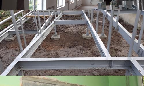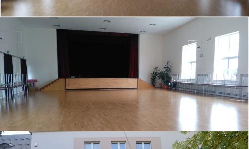 a) przebudowę niektórych elementów istniejącego budynku wiejskiego domu kultury (wykonanie rozbiórki schodów wewnętrznych w przebudowywanym sanitariacie i wykonanie stropu nad sanitariatem w miejscu wyburzonych schodów, poszerzenia otworów drzwiowych, wybicia nowych otworów, wykonanie warstw wygłuszających stropu wraz z posadzką żywiczną na sali wrotowiska oraz warstw wygłuszających strop oraz posadzki z paneli w pozostałych pomieszczeniach, wykonanie nowej aranżacji pomieszczeń),