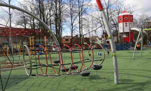 Plac zabaw składa się z czterech części. Pierwsza przeznaczona jest dla dzieci starszych w wieku 10+, druga dla dzieci małych oraz dzieci z niepełnosprawnościami, a pozostałe dwie strefy to bezasekuracyjny park linowy i tyrolka.