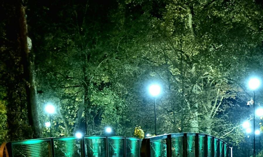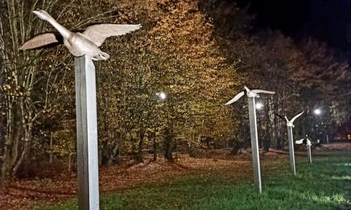 Zabytkowy Park dworski zlokalizowany jest w centrum Karlina przy ulicy Waryńskiego. Z jednej strony graniczy z kanałem Młynówki, z drugiej zaś strony Park graniczy z rzeka Parsętą. Park znajdował się w złym stanie technicznym, kładka która stanowiła niegdyś jedyną drogę do Parku od strony miasta została rozebrana. Alejki parkowe były nieuregulowane i nieutwardzone, zieleń uległa degradacji. W momencie występowania opadów deszczu tworzyło się błoto, uniemożliwiając korzystanie z terenu. Zakres rewitalizacji obejmował: roboty budowlane oraz zakup elementów stałych wyposażenia, instalację latarni, podświetlenia koron najpiękniejszych drzew, monitoringu oraz montaż i wyposażenie placu zabaw. Wykonano również kładkę pieszą spinającą brzegi kanału Młyńskiego w Karlinie o konstrukcji stalowo-betonowej, łukową, podświetlaną. Wykonano nasadzenia i wycinki drzew i krzewów, nasadzenia uzupełniające zieleń bindaż na pnącza. Nad prawidłowym przebiegiem robót budowlanych czuwał archeolog, a główną ozdobą parku jest rzeźba plenerowa przedstawiająca postaci sylwetki pięciu gęsi ustawionych liniowo w kolejnych fazach wzlotu wykonana z brązu.