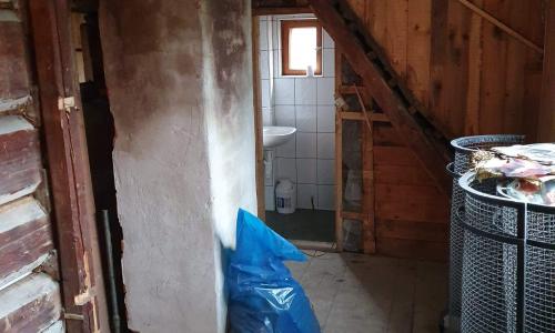 Wykańczając budynek użyliśmy wszystkich starych desek odzyskanych w trakcie remontu. Wszystkie opaski drzwiowe, okienne oraz szpalety zostały nimi wykończone. Każda ściana i przejście pomiędzy pomieszczeniami zostało w tym miejscu w którym było pierwotnie w stanie nienaruszonym, pomimo faktu, że niektóre z nich mają tylko 160/170cm.