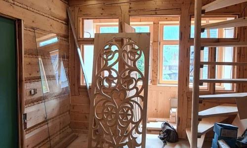 Znakomita większość rzeźbień w budynku została wykonana przez cenionego zakopiańskiego artystę rzeźbiarza Adama Doleżuchowicza.