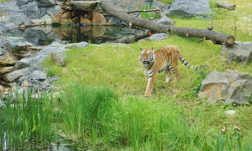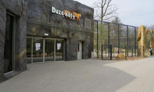Schronisko wraz z wybiegiem dla dużych kotów i kładką pieszą nad akwenem ulica Spacerowa 10 Ogród Zoologiczny w Opolu