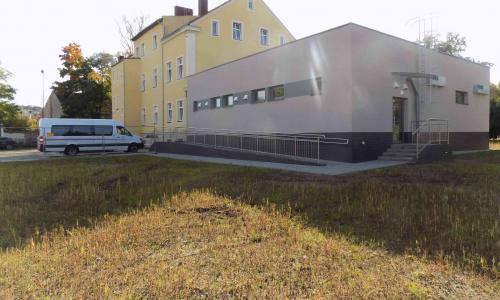 – Budowa sali do zajęć rehabilitacji i terapii ruchowej” realizowana była przez Powiat Wołowski w okresie od września 2020 r. do września 2021 r. i dofinansowana była ze środków PFRON w ramach dofinansowania robót budowlanych dotyczących obiektów służących rehabilitacji, w związku z potrzebami osób niepełnosprawnych. Budynek został oddany do użytku 30.09.2021 r.