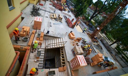 - rozbiórkę istniejących garaży oraz fragmentu budynku;