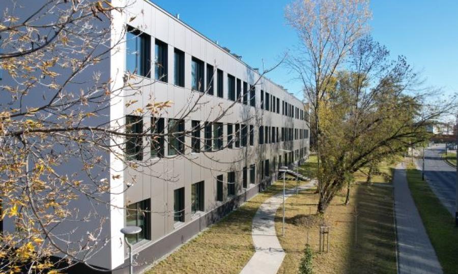 Budynek B po przebudowie zachował dotychczasowy kształt. Wymianie uległa konstrukcyjna tkanka budynku czyli warstwy wykończeniowe stropów i ścian, układ wewnętrzny oraz wyposażenie techniczno-instalacyjne. Ze względu na konieczność pozostawienia konstrukcyjnych ścian zewnętrznych zmianie uległy jedynie wielkości pierwotnych otworów okiennych w celu zapewnienia odpowiedniej ilości światła dziennego dla nowych funkcji pomieszczeń.