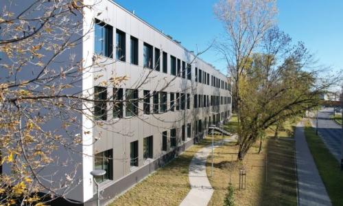 Budynek A po przebudowie i rozbudowie o dok rozładunkowy, zachował dotychczasowy kształt. Zmianie uległa konstrukcyjna tkanka budynku, ściany osłonowe, warstwy wykończeniowe stropów i ścian, elewacje, układ wewnętrzny oraz wyposażenie techniczno-instalacyjne budynku. W trakcie prowadzenia robót konieczna okazała się wymiana dachu budynku, który obecnie został wykonany w konstrukcji stalowej. Elewacje budynku A zyskały całkowicie nowy wygląd, Wymienione ściany zewnętrzne z nowym rytmem otworów okiennych całkowicie zmieniło odbiór budynku. Wszystkie ściany zewnętrzne zostały obłożone termoizolacją. Elewacja południowa i północna zostały przebudowane, wymienione zostały ściany osłonowe wypełniające szkielet konstrukcyjny budynku zostały obłożone panelami elewacyjnymi w kolorze szarym. Elewacje szczytowe zostały otynkowane na biało dla kontrastu.