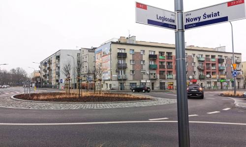 Przebudowa skrzyżowania ulic Nowy Świat-Ułańska-Legionów na rondo to etap robót drogowych prowadzonych w ramach zadania pn. „Rozbudowa ulic w ciągu drogi wojewódzkiej nr 450 na odcinku od Rogatki do ul. Kubusia Puchatka”. Zakres prac objął m.in.: rozbiórkę nawierzchni jezdni, chodników i zjazdów, wykonanie sieci kanalizacji sanitarnej, przebudowę sieci uzbrojenia technicznego, wykonanie nowej konstrukcji jezdni, ścieżki pieszo-rowerowej i chodników.