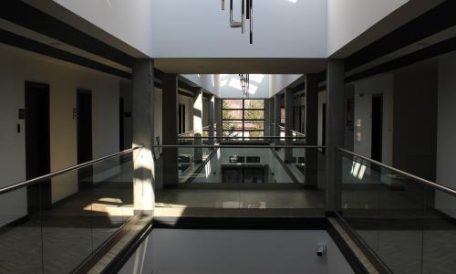 Na parterze budynku zlokalizowano również bibliotekę z wydzielonymi pomieszczeniami WC oraz socjalnymi oraz salę konferencyjną mogącą pomieścić do 120 osób.