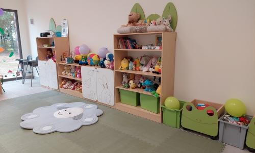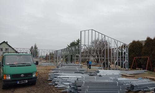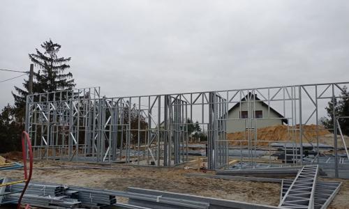 - budowa budynku przedszkolno-żłobkowego (budynek parterowy, niepodpiwniczony, dach kryty blachą na rąbek stojący lub „klik”. Ściany wznoszone w systemie szkieletu stalowego. Budynek o podziale na strefy: dydaktyczną, obejmującą dwie pracownie dla dzieci przedszkolnych w grupach po 25 osób oraz salę żłobkową przewidzianą dla 16 dzieci wraz z indywidualnymi pomieszczeniami zaplecza oraz WC, każda z sal ma bezpośrednie wyjście na zewnątrz budynku. Strefa żywieniowa składająca się z kuchni, pomieszczeń magazynowych, obsługowych i socjalnych dla personelu kuchennego. Budynek zawiera również strefę administracyjną z pokojem nauczycielskim z funkcją magazynowania dokumentacji administracyjnej oraz WC.