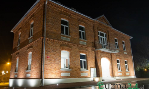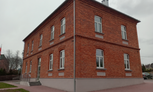 zbudowany z czerwonej cegły licówki tzw. grancówki, o którym pierwsze zapiski pojawiają się już w 1935 r. kiedy to na strychu budynku (wówczas należącego do Gminy) wybuchł pożar - trawiąc całe składowane tam archiwum gminne, a także niszcząc obiekt w znacznym stopniu. Mieszkańcy jednakże nie próżnowali - już na początku stycznia 1936 podjęto na zebraniu gromadzkim decyzję aby budynek odbudować, a z uwagi na jego ważną rolę dla mieszkańców podnieś go o jedno piętro. Tym samym wybrano komitet budowy, który nadzorował wszystkie prace, które odbywały się w czynie społecznym. Wspólnymi siłami mieszkańcy Gminy Łużna bardzo szybko odbudowali budynek i postanowili, że prócz siedziby gminy będzie tam jeszcze miała siedzibę pełna siedmioklasowa szkoła. Szkoła, jak i urząd przetrwały trudne czasy II Wojny Światowej i w swoich murach skrywają wiele zapomnianych, nigdzie nie spisanych i nie uwiecznionych historii - zarówno tragicznych jak i niezwykle szczęśliwych. Po zakończeniu działań wojennych budynek przez wiele lat był w bardzo złym stanie - mieścił w sobie zarówno szkołę, jak również lokale oddane pod działalność usługową - w tym zaczęła tam funkcjonować placówka pocztowa. W 2020 r. przygotowano projekt rewitalizacji budynku zabytkowego i adaptacji na potrzeby siedziby Gminnego Ośrodka Pomocy Społecznej w Łużnej, jak również Poczty Polskiej (delegatura w Łużnej). Ostatecznie remont budynku, wraz z przywróceniem przedwojennego wyglądu, zakończył się w 2022 roku. W 2022 r. został on przekazany do użytku Gminnego Ośrodka Pomocy Społecznej w Łużnej, jak również Poczty Polskiej (delegatura w Łużnej). Seniorzy pamiętający czasy II wojny Światowej, jak i wczesne lata powojenne , z sentymentem odwiedzają budynek i przypominają historie z nim związane. Są również i tacy, którzy przynoszą dawne fotografie budynku i sal w nim usytuowanych - chcąc ocalić od zapomnienia ten jakże ważny dla mieszkańców kawałek historii.