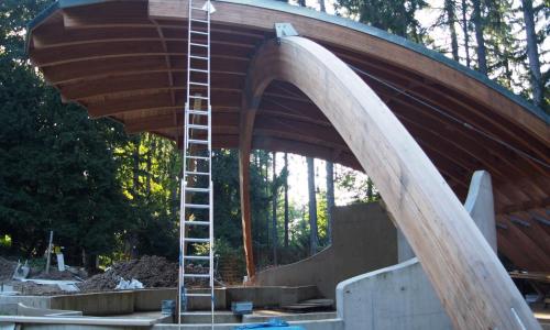 Przebudowa starego amfiteatru w Parku Zdrojowym w Szczawnie Zdroju. W ramach zadania powstał Amfiteatr z otwartym zadaszeniem o konstrukcji drewnianej wraz z trybunami oraz obiektem socjalno-technicznym. Ściany w formie łuków polepszają jego akustykę. Scena drewniana o wymiarach 88 m kw. i wysokości 7 metrów.