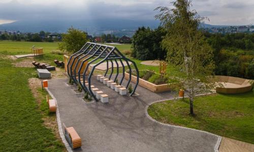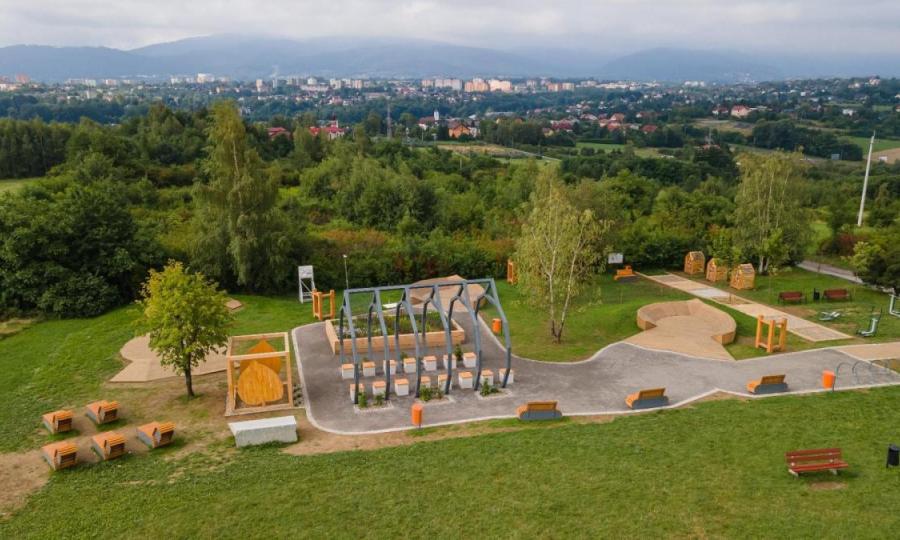 Wzgórze Trzy Lipki to miejsce o charakterze rekreacyjnym oraz edukacyjnym utworzone z myślą o mieszkańcach miasta oraz odwiedzających je turystach. Głównym i najbardziej charakterystycznym obiektem całego założenia jest ażurowa pergola składająca się z elementów przypominających kształtem liść lipy. Dzięki umieszczonym pod pergolą siedziskom możliwe jest prowadzenie terenowych zajęć edukacyjnych. Ponadto zlokalizowano tu obiekty małej architektury przeznaczone do wypoczynku wśród zieleni typu leżaki czy drewniane podesty widokowe z oparciem. Część podestów wyposażona jest w lunety umożliwiające podziwianie panoramy miasta oraz krajobrazów górskich z bliższa. Na terenie znajdują się również inne elementy: tablice edukacyjne, stacja meteorologiczna, rzeźba przedstawiająca panoramę gór w postaci reliefu, domki dla owadów, ścieżka sensoryczna, ławki, stojaki rowerowy oraz kosze na odpady. Całość zagospodarowania dopełniają grządki z nasadzeniami rodzimych roślin w formie ogrodu beskidzkiego.