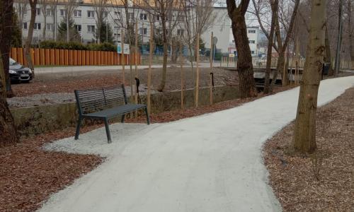 Przy ulicy gen. Stanisława Maczka, tuż przy ujściu potoku Straconka do rzeki Białej powstało nowe, pełne zieleni miejsce na mapie miasta. W ramach działań rewitalizacyjnych utworzono niewielki obszar o charakterze parkowym, który wypełnił niezagospodarowany do tej pory teren. Dzięki wykonaniu drewnianej kładki pieszej skomunikowano nowy skwer z istniejącym Parkiem Strzygowskiego.