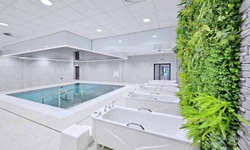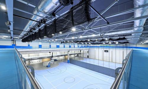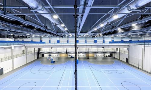 Dodatkowo w hali znajduje się także siłownia, szatnie zawodników z węzłami sanitarnymi, pomieszczenia służące odnowie biologicznej oraz pomieszczenia magazynowe, techniczne i socjalne.