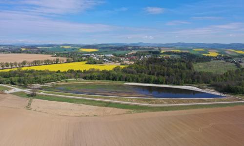 1. Zaporę ziemną wraz z przesłoną przeciwfiltracyjną. Zapora długości 840 m, max wysokość 21 m, kubatura nasypów ok. 1 mln m3, Przesłona przeciwfiltracyjna w technologii VDW,