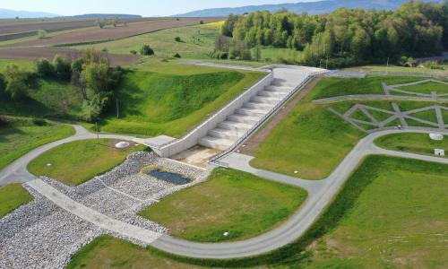 Suchy zbiornik przeciwpowodziowy na rzece Bystrzyca Dusznicka w miejscowości Szalejów Górny