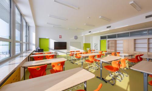 Budynek szkoły został wybudowany w technologii pasywnej. Oznacza to, że jest ono energooszczędne i przyjazne środowisku. Budynek szkoły jest również dostosowany do potrzeb osób z niepełnosprawnościami. W szkole znajduje się nowoczesne wyposażenie, w tym tablice interaktywne i pracownie przedmiotowe. Nowe skrzydło zwiększyło liczbę miejsc w szkole z około 400 do około 900.