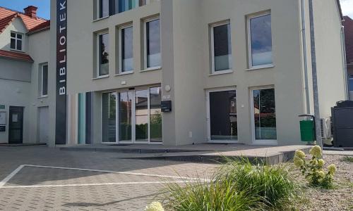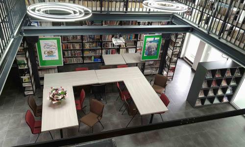 Nowo rozbudowany budynek posiada zupełnie nowe, specjalistyczne przestrzenie – parter i antresola jest przeznaczona na część biblioteczną – głownie do udostępniania zbiorów, z miejscem wypoczynku i pracy, oraz strefą multimedialną. Zostały przestrzennie wydzielone części dla dzieci, dla dorosłych oraz dla młodzieży. Część parteru przeznaczona na cele kulturalne – wydzielony panel parteru z systemem wystawienniczym, służący organizacji imprez oraz część antresoli przeznaczona na warsztaty szczególnie o charakterze interaktywnym, multimedialnym. Poddasze jest częścią przeznaczoną na warsztaty wymagające specyficznej infrastruktury – zajęcia ruchowe, dziecięce, warsztaty kulinarne i rzemieślnicze.