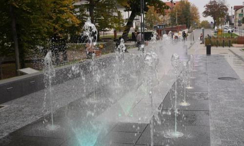 i z ul. Tadeusz Kościuszki oraz zagospodarowaniu fragmentu ul. 1 Maja z przylegającą częścią parku w Jastrzębiu-Zdroju. Zagospodarowanie terenu wzbogacono o plac z fontanną multimedialną - fontanna o wymiarach 19x3 m, tarasów widokowych z wygodnymi ławkami do wypoczynku. Tarasy zostały wykonane na trzech poziomach w formie stopni