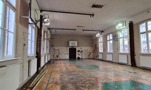 Budowa sali gimnastycznej z boiskiem do siatkówki, koszykówki oraz do piłki ręcznej wraz z szatnią, siłownią, zapleczem dla trenerów i częścią magazynową.