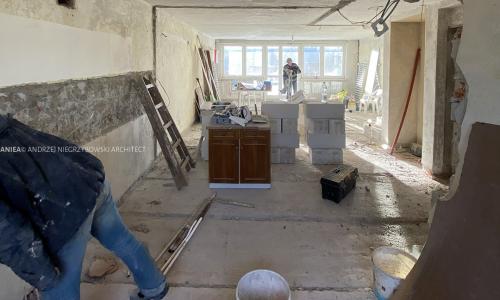 Bagaż doświadczeń Inwestorów i ich sprecyzowane potrzeby stanowiły punkt wyjścia dla początkowych prac ale dzięki swobodzie i zaufaniu, nie ograniczały ich, raczej prowokowały niestandardowe rozwiązania. Poważnym utrudnieniem przy tym były oczywiście możliwości techniczne samego budynku jak i niekorzystne proporcje istniejących przestrzeni.