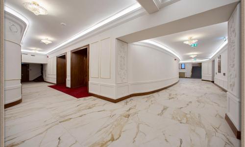4. Nowe konstrukcje: W ramach inwestycji zbudowano nowe fragmenty budynku, które zwiększyły jego powierzchnię użytkową. Zainstalowano również nowe elementy, takie jak m.in. czujniki przeciwpożarowe i systemy akustyczne.