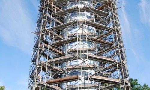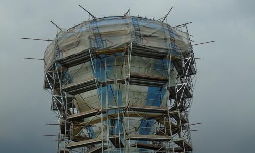 Trudnością w pracach remontowych zarówno na zewnątrz, jak i wewnątrz, sprawiała nietypowa konstrukcja budowli, jej wysokość oraz nachylenie kielicha.